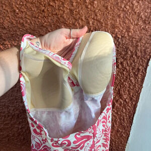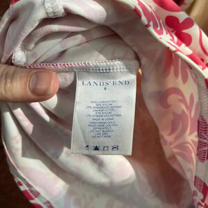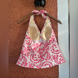 Lands End Swimsuit Top Womens 8 Tankini Pink White Floral Paisley Halter V Neck