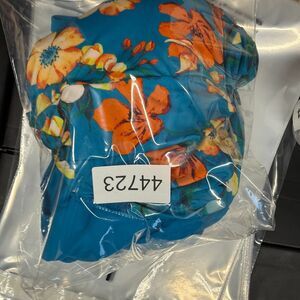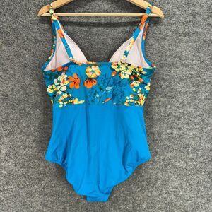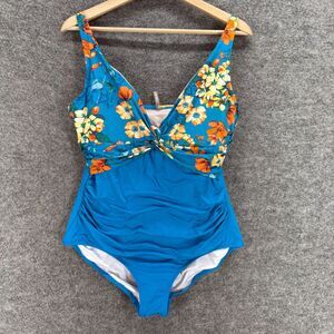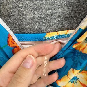 Lands' End Swimsuit Women 14 Blue Floral One Piece Sleeveless Push Up V-Neck