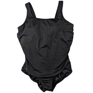 Lands' End Swimsuit Womens 16W Black One Piece Full Coverage Modest Beach