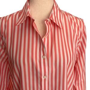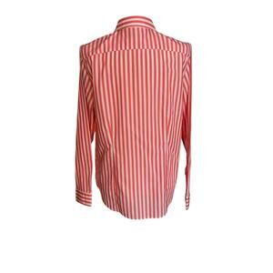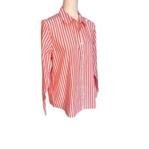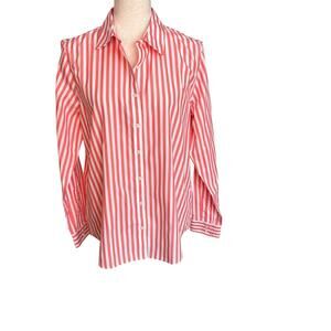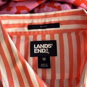 Lands End Sz 12 Coral White Striped No Iron Twill Button Shirt 100% cotton