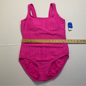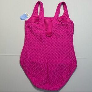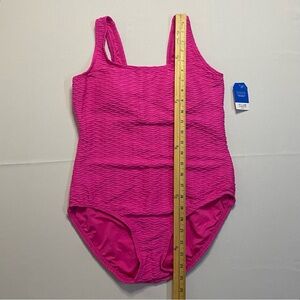 Land’s End Sz 12 Tugless Bright Pink Feminine Textured One-Piece Swimsuit
