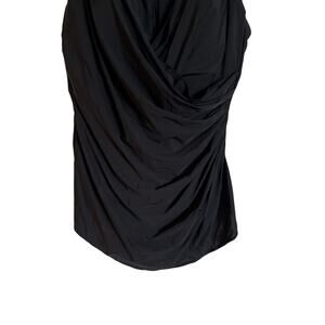 This one piece skirted swimsuit features firming Slendertex fabric to smooth and shpae, a lower cut leg opeing for more coverage, a spft cup bra, a V neckline, and a skirted overlay to add a touch of elegance. This suit is in excellent preowned condition with no rips, holes or stains. Please see images for details and approximate measurements.