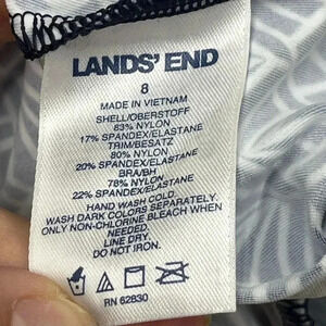 Lands End size 8 tankini top is in very good used condition. Banded at the waist to give a more relaxed blouson fit.
