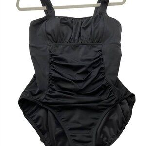 Lands' End Sz 8 Black One-Piece Swimsuit Ruched Front Slimming Old Money Classic