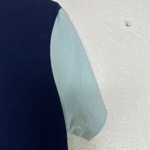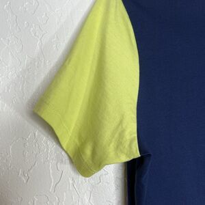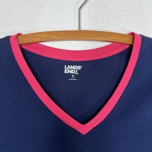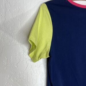 Lands End T Shirt Brushed Cotton Color Block Tee Navy With Pink Neon Green Small