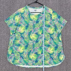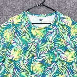 Lands End T-Shirt Womens 2X Blue Green Tropical Resort Palm Leaves Colorful Soft