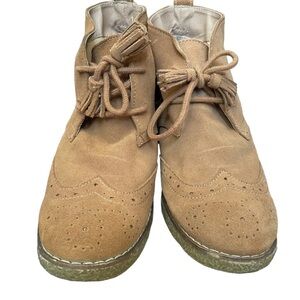 Lands End Tan Brown Suede Leather Chalet Chukka Tassel Wingtip Ankle Boot Sz 8.5
