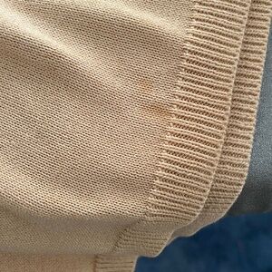 All-cotton short-sleeve sweater is versatile and comfortable. Machine wash and dry, Small stain near front hem shown in photo and reflected in price.