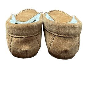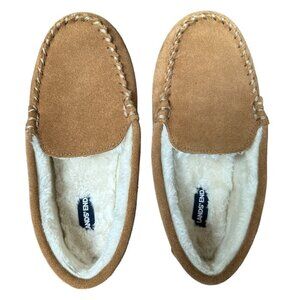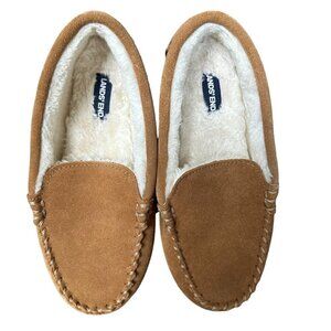 Lands' End Tan Suede Moccasin Slippers With Faux Shearling Lining Women's Size 5