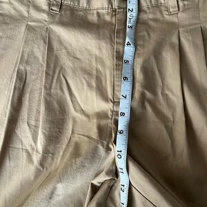 These Lands' End wide leg pants in a classic tan color offer a relaxed fit with elegant pleats, making them a versatile addition to any wardrobe. The full-length design ensures a sophisticated look suitable for both casual and formal occasions. Enjoy the timeless style and comfort these pants bring to your ensemble.