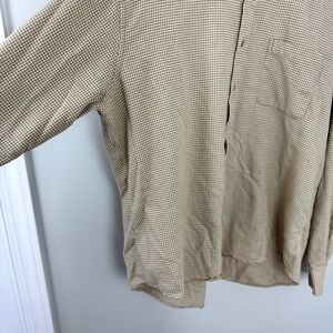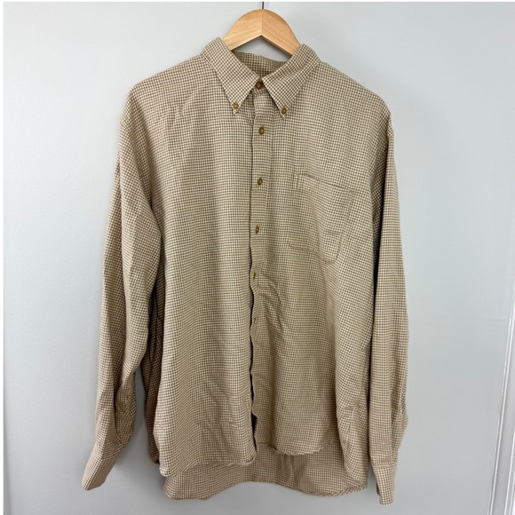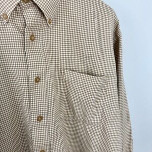 Land's End Tan/White Houndstooth Button Down Flannel Shirt Men's XL