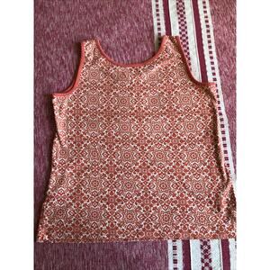 Lands’ End Tank Top Women’s Medium Orange Pattern Casual Sleeveless Cotton
