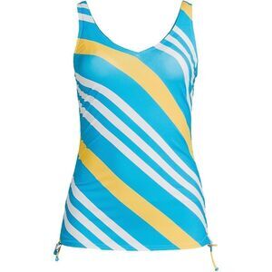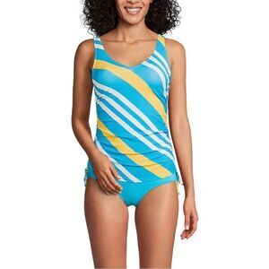 Land's End Tankini Adjustable sides straps underwire Turquoise Awning Stripe 14