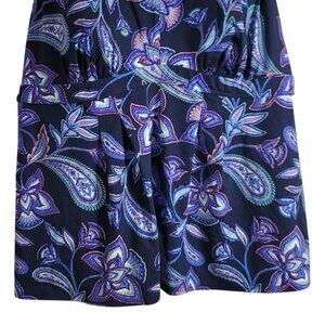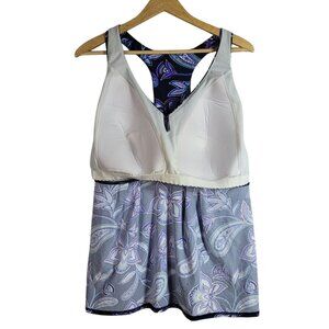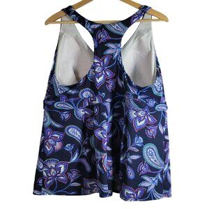 Lands' End Blue Purple Tankini Swim Top Racerback Shelf Bra Pullover Paisley Flutter Hem.