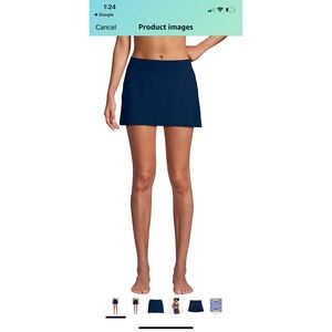 Upgrade your swim style with this flattering and functional Lands' End two-piece swimsuit set. The navy blue tankini top features stylish ruching and wide straps with a built-in soft-cup bra for shaping and support. The matching swim skirt has full built-in briefs and a slightly flared hem for modest, comfortable coverage.