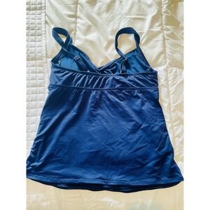 Lands' End Tankini Swimsuit Set Sz. 10 Ruched Top Modest Swim Skirt Navy Blue