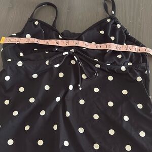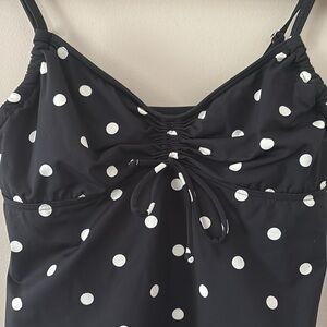 Lands End Tankini Swimsuit Top Polka Dot Tie Black and White Size 12