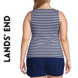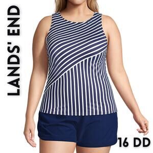 Lands' End Tankini Swimsuit Top Size 16 DD High Neck Blue White Stripe UPF 50