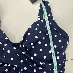 Lands End Tankini Swimsuit Top Womens 16 DDD Blue Polka Dot Padded Tummy Control