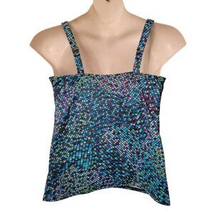 Lands End Tankini Top 14DD Purple Blue Mosaic Print Swim Beach Summer