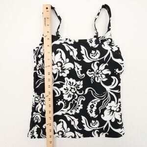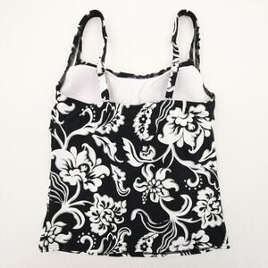 Lands End Tankini Top Black White Floral Scoop Neck Soft Cup Swimsuit Swim 2