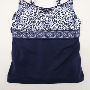 Lands End Tankini Top Navy Blue Pattern Underwire Scoop Neck Swim Top Size 8
