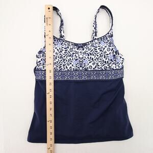 Lands End Tankini Top Navy Blue Pattern Underwire Scoop Neck Swim Top Supportive Size 8