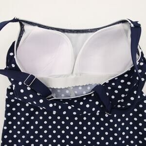 Lands End Tankini Top Navy Blue White Polka Dot Scoop Neck Built-In Bra Size 2D