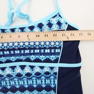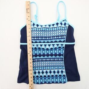 Lands End Tankini Top Navy Turquoise Geometric Scoop Neck Racerback Built-In Bra Size 8