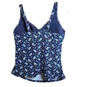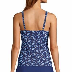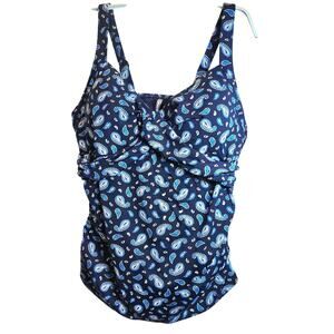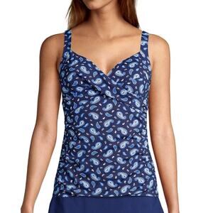 Lands End Tankini Top Paisley Tummy Control Underwire Sz 16W D DD Navy Blue