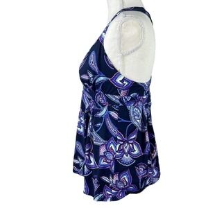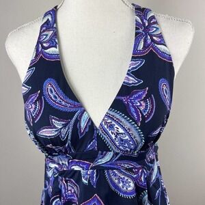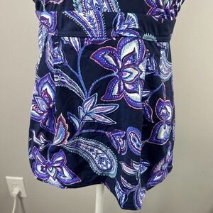 Lands' End Tankini Top Swimsuit Size 6 Racer Back Blue Purple Paisley