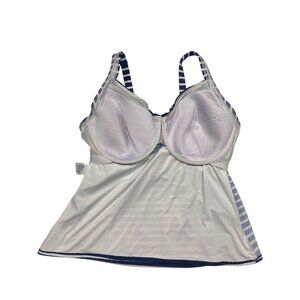 Lands End Tankini Top Womens Size 20W Blue & White Striped Built-In Underwire