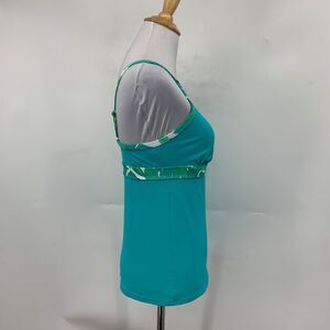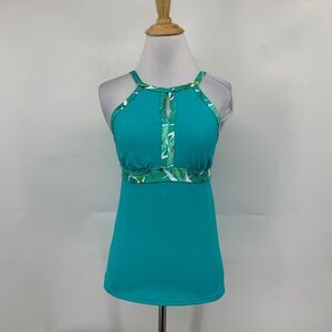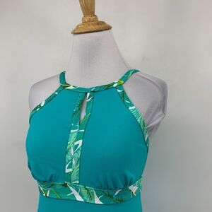 Lands' End Tankini Womens 2 Multi Keyhole Halter Leaf High Neck Padded Swim Top