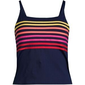 Land's End Tankini Plus Top square neck navy sunset stripe adjustable Various