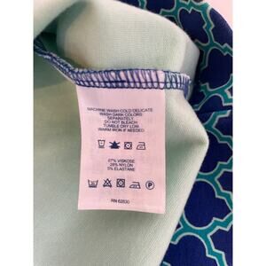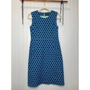 Lands End Teal Print Sleeveless Crew Neck Sheath Dress Womens Size 2