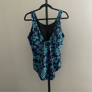 Lands' End Teal and Navy Printed One Piece Swim Suit Size 22