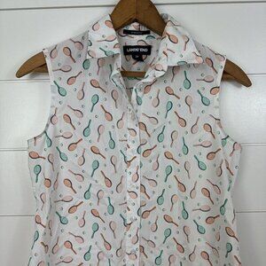 Lands End Tennis Print Sleeveless No Iron Supima Button Front Shirt White sz 2P