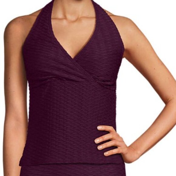 Lands' End Texture Halter Tankini Swimsuit Top - Size: Small Long - NWT