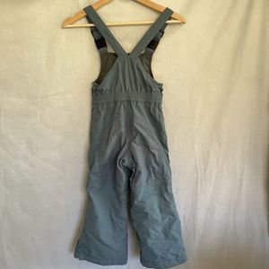 Lands' End Kids Size 4 The Squall Ski Bib Snow Pants in Slate/Dusty Blue. Features include a zip closure, zippered and lined pockets, adjustable and quick release suspenders, reinforced knees and bum, ski pass loop, elastic waist, and grow-along extensions. Made of 100% nylon, these waterproof pants are perfect for skiing, snowboarding, snowshoeing, sledding, and any other winter activity. Machine washable.