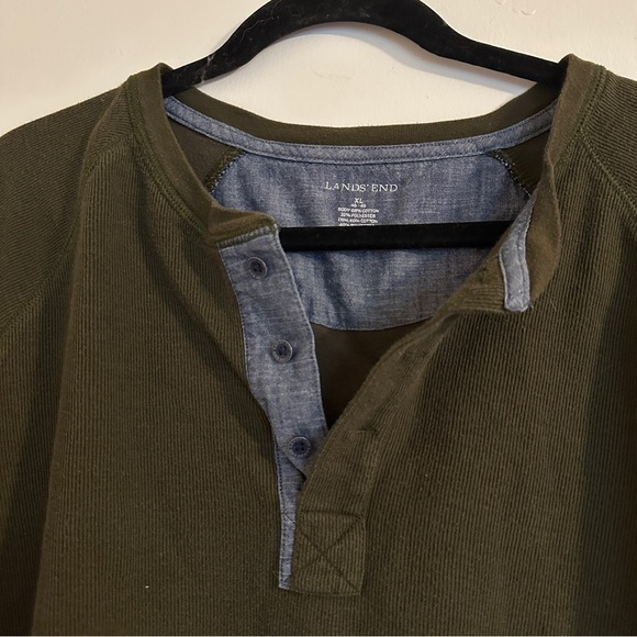 Lands End Thermal Waffle Long Sleeve Henley Hunter Green men’s XL 46-48