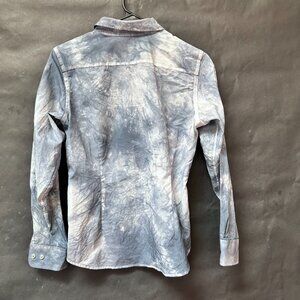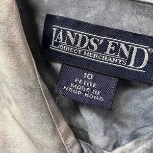 Lands End Tie Dye Gray Shirt Button Down Office Size 10 Petite Cotton Blend Top