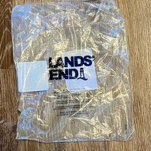Lands' End navy blue, tie dye, one piece swimsuit. Girls size 12 Plus. UPF 50. Elastic criss-cross straps. Double layer shelf bra. 84% polyester/16% spandex. Lining: 100% polyester. Machine washable. Brand new, with tags.