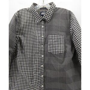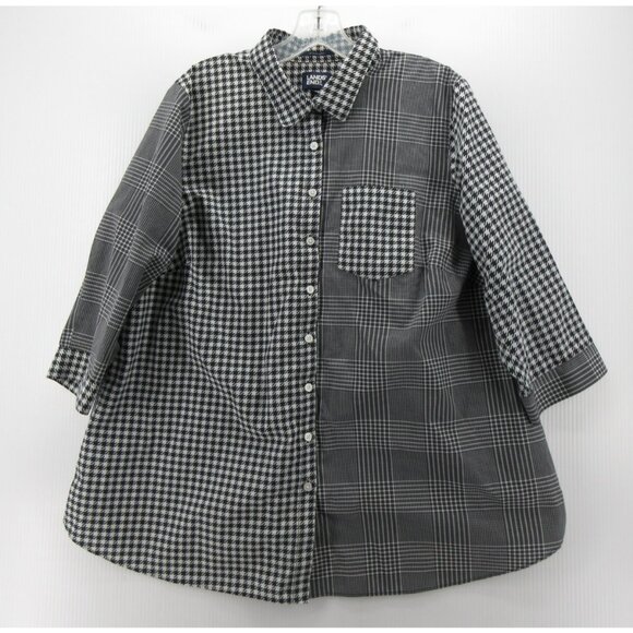 Lands End Top 18W Plus Shirt Patchwork Houndstooth Plaid No Iron