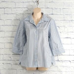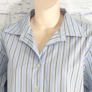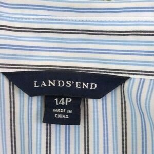 Lands' End Top Shirt Button Down Blue White Striped Sz 14P