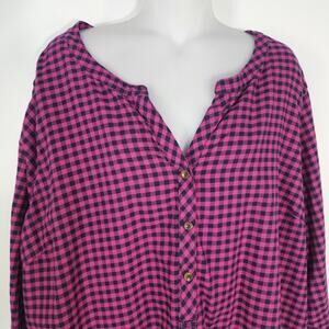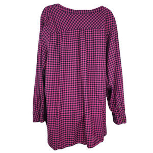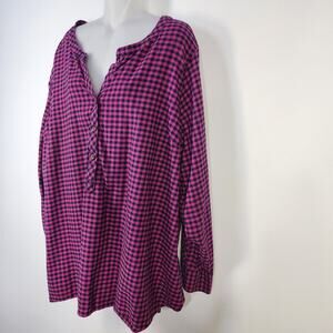 Lands End Top Women 24W Purple Black Gingham Checked Flannel Popover Long Sleeve