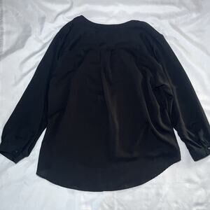 Lands End Top Womens 22W Plus Black Long Sleeve Split Neck Blouse Career Minimal