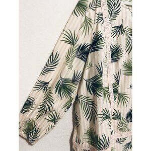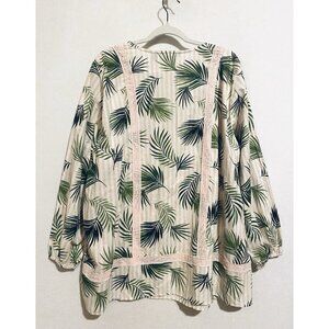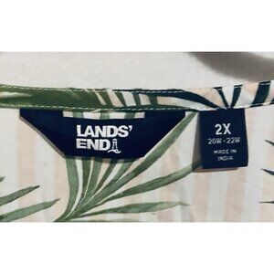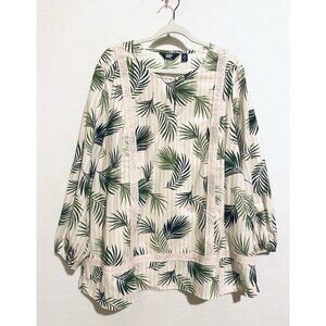 Lands End Top Womens 2X Pink White Striped Palm Tropical Long Sleeve Tunic Boho