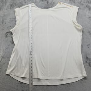 Lands End Top Womens 2X White Gold Zipper Shoulder Cuffed Cap Sleeves Stretch