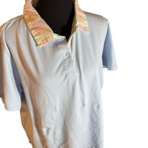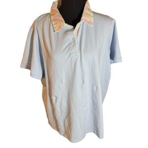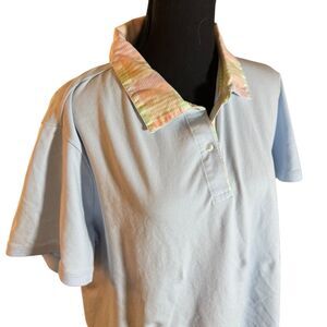 Lands End Top Womens 2Xl Blue With Multi Colored Collared Shirt