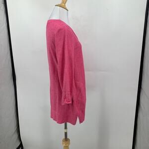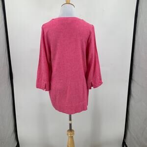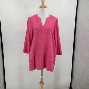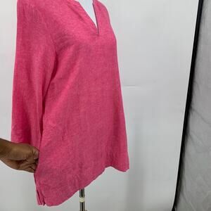 Lands End Top Womens S Small Azalea Linen Blend Split Neck 3/4 Sleeve Shirt